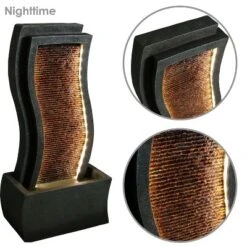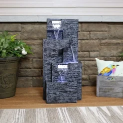 Sunnydaze Decor Sunnydaze 32″H Electric Metal Cascading Tower Outdoor Water Fountain With LED Lights