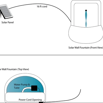 • EASY TO USE: The solar wall waterfall fountain only needs sunlight to run properly and mounts against any surface using a sturdy hook, screw, or nail for easy and quick assembly; The included submersible water pump features a 16 foot long power cord so you can conveniently place the solar panel in a sunny location