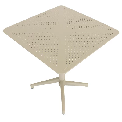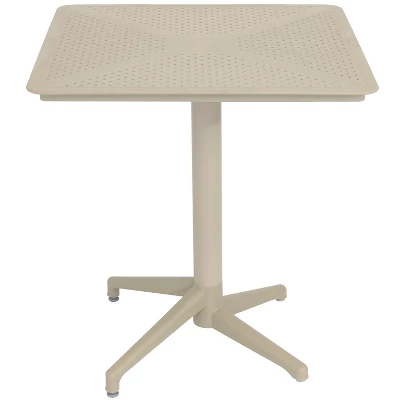 Dine indoors or outdoors with this unique, smaller, square dining table. At 28 inches square, this table offers the perfect amount of space to enjoy a meal or drinks with friends or family. Designed to last from resin and aluminum, the table is sure to be a functional eye-catching surface on any deck, patio, balcony, porch or indoor living space while remaining resistant to the outdoor elements. Easily fold this table when not in use or at the end of the season for easy storage and easy portability wherever needed. Get comfortable conversation space for the patio, garden, or balcony to enjoy light, summer breezes effortlessly with friends. Enjoy delicious dinner or refreshing drinks anywhere while this fun, cute, and versatile set creates an inviting space, sure to complement any existing decor or aesthetic. This neutral, simple design is sure to brighten up any space while allowing you a restful spot in any area.