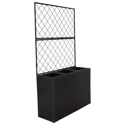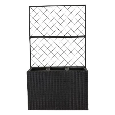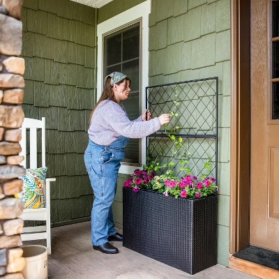 Grow a variety of beautiful plants, herbs, and flowers with this elegant trellis box planter. This garden box’s compact size makes it a stylish accent for a variety of locations. Made from durable polypropylene with a sturdy steel frame, this sophisticated planter box can be used either indoors or outdoors. It features three removable square plastic inserts that make planting easy as well as a trellis for growing plants. Plus, the garden box planter is easy to clean and maintain. Each insert can hold up to 0.315 cu ft of soil (2.36 gallons). The classic black polypropylene wicker look will complement any decor style. The lightweight design makes it easy to move the planter from place to place. Add this lovely garden planter to the deck, patio, front porch, living room, or sunroom. No tools or assembly is required. This stylish plant box with trellis is ready for use straight out of the box.