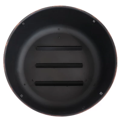 Gather friends and family around this portable wood fire pit for a fun evening. This sturdy cauldron-style fire bowl is an elegant centerpiece for the patio or backyard. It features a convenient handle on each side of the fire pit that makes it easy to grip and move from place to place. The open design of the fire pit is wonderful for toasting marshmallows and roasting hotdogs. This heavy-duty fire pit is made from durable steel with a heat-resistant paint finish in brushed bronze for lasting strength and beauty. Plus, this fire pit includes a tough PVC cover for protection from the outdoor elements when not in use. It also features a steel spark screen to help keep stray embers safely contained within the fire pit. Once the fire is completely extinguished and cool to the touch, place the cover over the metal fire pit until the next time.