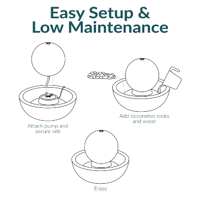 - Water flows gently from orb into rocky basin