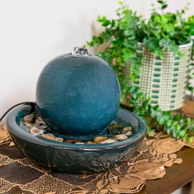 • RELAXING WATER FEATURE: This indoor water fountain for desk is made of durable ceramic. The material has a beautiful, smooth glazed surface with vibrant color. Water flows from the top of the orb down into the basin below. Because of the unique kiln firing process, colors may vary slightly.