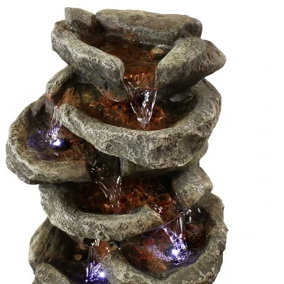 This durable lightweight fountain is designed to look like real stacked stones with water flowing over each of the 6 levels of rock pools. Made from durable polyresin and fiberglass, this small fountain captures the beauty of nature but uses a lightweight, easy-to-maintain material. It’s just the right size for an end table, desk, or dresser. The electric pump enables the gently flowing water to flow from the top tier all the way down to the bottom pool where it circulates back through the fountain. The small, tiered fountain features small pebbles in each rock pool, padded feet to protect the table surface, natural detailing, and LED lights on the 3rd, 5th, and 6th levels to illuminate the fountain during the evening hours. Plus, this fountain conveniently plugs into any standard electric outlet. Place this fountain in the living room, bedroom, kitchen, or office to stay relaxed anywhere.