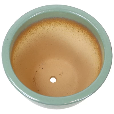 Display vibrant flowers, luscious greenery, or any kind of plant on the porch, deck, patio, or flower bed with this set of two beautiful ceramic planters. These ceramic planters add color to your indoor or outdoor plant displays instantly. With two identical pots, it’s easy to create a cohesive look anywhere. Set the planters on the front step or porch for some symmetry, or place them at different heights on a plant stand (stand not included) in the living room. These outdoor pots for plants are made from durable ceramic with a mineral glaze finish for long-lasting beauty. The smooth finish also makes the planters easy to clean with water and a mild detergent. Each large flowerpot features one hole in the bottom to allow proper drainage for your flowers and plants. Always use a saucer (saucer not included) beneath the planter when placing them indoors to avoid spilling excess water on the floor.