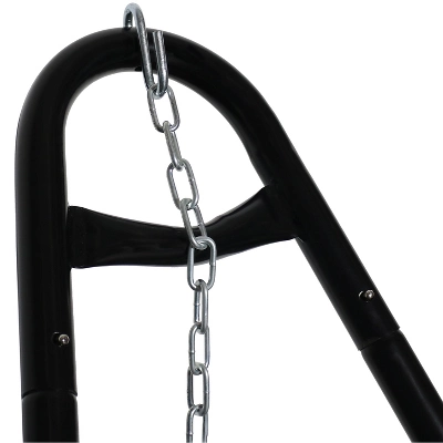 • DURABLE DESIGN: Stand is made from sturdy 1.5 inch tubular powder-coated steel for resistance to rust and fits hammocks ranging from 9.5 feet to 14 feet long; Also comes with two 3-inch s-hooks, two heavy gauge hanging hooks, four plastic feet, and two 18 inch chains