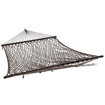 • CLASSIC AND DURABLE: This double hammock with spreader bar is made from a soft 65% cotton and 35% polyester rope material and features classic hardwood spreader bars for added style, comfort, and relaxation.