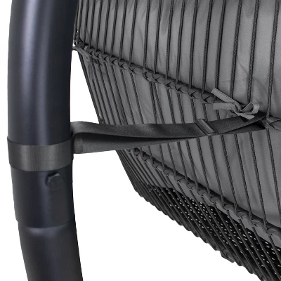 • WEATHER-RESISTANT DESIGN: Each piece in this outdoor egg chair with stand is designed to withstand the elements. The stand is made from durable, powder-coated steel, the egg chair is made from polyrattan and nylon rope, and the cushions are made from soft polyester.