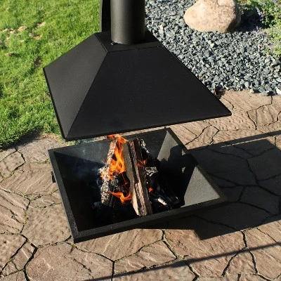 With this black, steel, wood-burning, modern backyard feature, a chiminea meets a fire pit to bring the best of both worlds to any backyard. This simple, elegant, fire pit and chiminea is the perfect way to heat up on the patio, bring fun in the backyard after dark, or add a unique feature to the campsite or cabin. This chiminea features a durable, steel construction with a high-temperature, black paint finish so it is sure to last through many seasons of use and remain resistant to the elements outdoors. With the open fire design, easily tend to the fire with a poker or a log clamp (not included) to keep the fire burning all night long while the chimney-like feature keeps the smoke and soot of the fire away from your immediate surroundings. This fire pit and chiminea combo is sure to be the center of your memory making with family and friends.