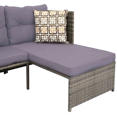 • COZY CHAT SET: This patio furniture set includes 1 patio sectional sofa, 1 coffee table, 1 throw pillow, 2 seat cushions and 3 back cushions. Easily create a comfortable and inviting outdoor seating area.