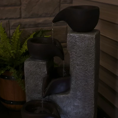 Enhance any patio, garden, or other outdoor area with this solar-operated fountain featuring a backup battery. Constructed of durable and easy-to-maintain polyresin, this fountain is lightweight, easy to move anywhere, and is resistant to the elements outdoors. Also, this tiered outdoor water feature is designed with a variety of textures and neutral colors to enhance any outdoor living space. Water gently flows from each of the tiered vessels for a peaceful decorative accent that harnesses the power of the sun via the included solar panel. When the solar panel is in direct sunlight, the pump will be powered by solar energy and the battery pack will recharge. Once fully charged, the battery will power the fountain for up to 4 hours. The battery will also automatically run the fountain when it is cloudy or nighttime. Place this stunning, detailed fountain anywhere and watch your space illuminate with soothing sounds and beautiful views.