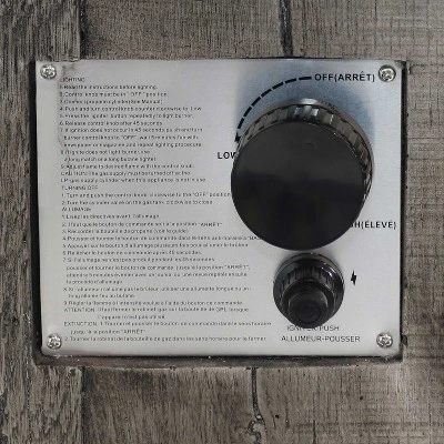 A fire pit is a great place to spend time with friends and family on the patio, deck, porch, sunroom, camp site, or any other cozy, outdoor living space. Featuring durable MGO and metal frame construction and an elegant, weathered wood appearance, enjoy this sturdy fire pit season after season. Because it is powered by liquid propane, it is easy to enjoy the warmth and comfort of a roaring fire with none of the smoke, ashes, or similar maintenance of a typical wood-burning fire pit. Plus, the durable ledge provides a convenient space for food, drinks, and other small items that are needed during an outdoor outing. Using the fire pit is easy, simply assemble the unit, put the included AAA batteries in the ignition, hook up the 20 lb LP tank (please note, a tank is not included) and press the ignition button to start the flame.
