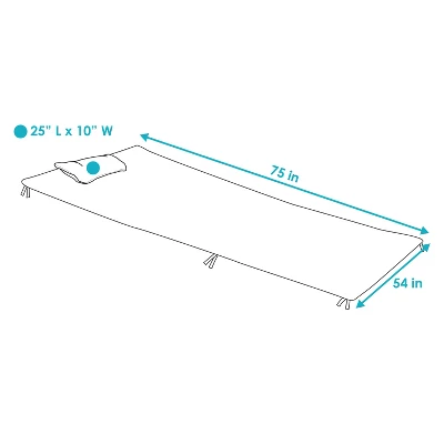 - • UNIVERSAL FIT: The hammock cushion pad measures 75″ W x 54″ D and it weighs 3.6 lbs. The ties measure 7.5″ L (6 total). The hammock pillow measures 25″ W x 10″ D. This hammock pad and pillow are large enough to fit most rope hammocks.