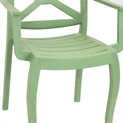 Bring elegant and durable seating to your backyard oasis with this set of Tristana plastic, outdoor armchairs. These chairs are constructed of strong and easy-to-clean polypropylene that can withstand the elements outdoors, sure to last for years to come. The plastic material is easy to maintain and will stay smooth to the touch compared to traditional materials. These chairs have also been thoughtfully designed to easily stack together, so they won’t take up a lot of storage space when not in use. These chairs are available in many colors and will look beautiful when placed on the patio, deck, front porch, or out in the yard or garden for an easy and convenient resting spot. Use them in covered porches and sunrooms as well to bring easy relaxation indoors. Available in many colors and featuring a cutout design on the back, bring these bright features to any space for convenient relaxation and easily enjoy great conversations with friends outdoors.