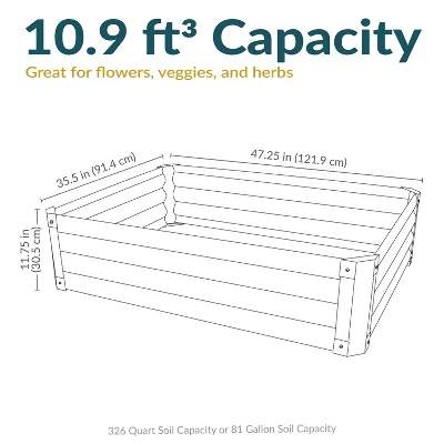 - Raised garden bed holds 10.9 cu ft of soil