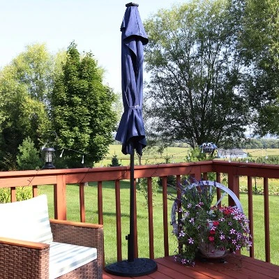 Bring shade to the balcony, deck, or patio with this half round patio umbrella. The freestanding market style 9-foot-wide umbrella is designed to be used in front of walls in a standard umbrella base. The wall umbrella is engineered to last with a steel pole and ribs as well as a polyester fabric top. This half umbrella is designed to be used with an umbrella base and a patio table (umbrella base and patio table are not included). Stay cool in any outdoor space with this umbrella, sure to provide protection and style. Designed for smaller spaces, this umbrella won’t take up too much room in outdoor areas. Easily fold up this umbrella when not in use, when the wind picks up, or to store it in the colder months. The umbrella also features LED lights that are solar powered to enjoy evenings with ease out on the patio, deck, or balcony.