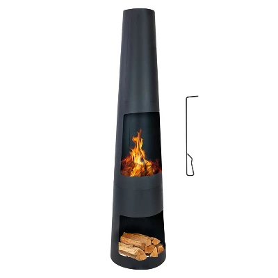 Enjoy the cozy warmth of roaring fire even if the yard or garden is small with this compact and stylish fire pit with chimney. Made from sturdy steel with a heat-resistant paint finish, this tall outdoor fire pit is built to last season after season. The base of the chiminea features a built-in log storage area to make sure that fresh firewood is always on hand to keep the bonfire burning. With its slim design, this stylish chiminea is a wonderful addition to small patios, campsites, or backyards. The relaxing warmth it produces makes it great for outdoor entertaining and gatherings.
