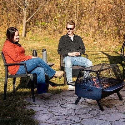 Get ready for the next backyard barbecue with this dependable outdoor grill fire pit. With a removable cooking grate included and two built-in ledges, which provide a convenient location for condiments, seasonings, and utensils, this rectangle fire pit is an outdoor griller’s dream. Made from solid steel with a heat-resistant paint finish in classic black, this fire pit is built to last. Plus, a durable, protective PVC cover is included to help the fire pit resist the outdoor elements for a long-lasting product life. Also included is a mesh spark screen to help keep stray embers safely contained within the fire pit. This stylish fire pit is a wonderful addition to the backyard, campsite, or patio. Gather friends and family members around this fire pit for cozy warmth or to serve up delicious, fire-roasted food. This classic fire pit will transform any outdoor space into the neighborhood’s favorite gathering place.