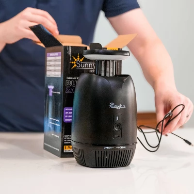 Enjoy a peaceful summer evening without swatting flies or mosquitoes with this convenient indoor mosquito zapper for the home. This small bug light is easy to carry, maintain, and operate. Place it on a table or shelf to keep a variety of bugs at bay. This bug zapper uses purple ultra-violet light to attract pests to the unit. The optional built-in fan can also help pull them into the bug zapper. This outdoor fly zapper for the patio features a powerful 360-degree electric shock and provides effective pest control for 215 to 538 square feet. Simply plug the USB cable to power the bug zapper. Plus, it is simple to maintain. Grip the bottom of the unit and twist to remove the bottom tray and empty the container without touching the contents. With a durable aluminum alloy casing, this bug zapper can be used either indoors or outdoors. It’s wonderful for the patio, porch, or sunroom.